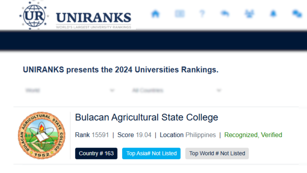 The Bulacan Agricultural State College (BASC) continues to make its mark in the country’s academic landscape, ranking 163rd in the Philippines in the recently released UniRanks 2024. This recognition underscores